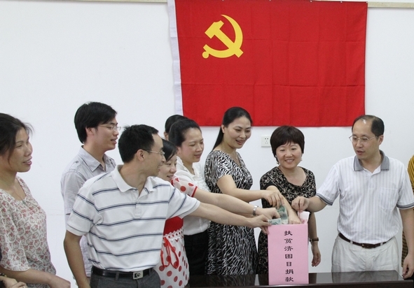 机关一支部党员积极响应广东省委组织部、省委创先争优活动领导小组《全省共产党员参与扶贫济困日活动倡议书》以及学校的号召,在6月30日开展了扶贫济困日捐款活动。这是支部党员继5月26日为帮助东星村村委及贫困户早日脱贫捐款之后的又一次善举。党员们以开展扶贫济困日活动为契机,慷慨解囊、奉献爱心,用实际行动向建党90周年献礼,为创先争优做出了表率。