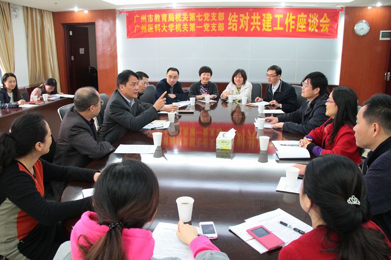 结对共建活动开展至今,在广州市教育局机关第七党支部的帮助下,广州医科大学机关第一党支部的党建工作不断发展和完善。为确保结对共建活动的可持续发展,“七一支部”于 2014年12月10日下午,在广州医科大学番禺校区行政楼5楼会议室召开结对共建工作座谈会,共同制定了《广州市教育局机关第七党支部与广州医科大学机关第一党支部结对共建工作实施方案》(以下简称《方案》)。